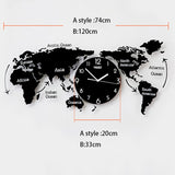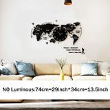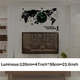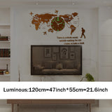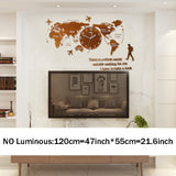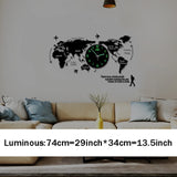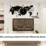 Large Ultra Quiet Acrylic Modern 3D Digital World Map Glow In Dark Wall Clocks