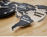 Premium quality wall clock. With world map design, modern, creative and elegant. The fashion pattern is unique and popular among people. High precision movement provides an accurate time keeping. Suitable for bedroom, living room, study room, office and children's room and so on.