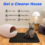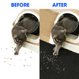 Just place the litter box on top of the dual layered mat, and watch as the hallow ridges comfortably spread your cat's paws, which greatly reduce scatter and trap excess litter. Not only will it keep the surrounding are clean, but the litter mat uses a non-slip material to keep the litter box in place. Plus the mat is a cinch to clean.